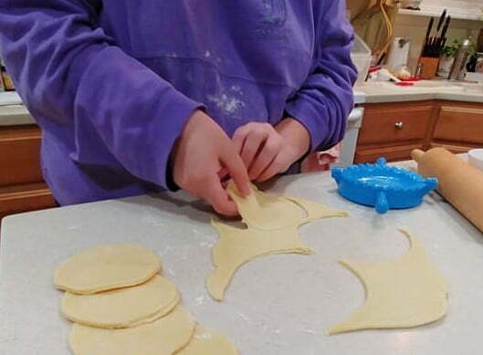 To assemble the empanadas, Millie portions out the dough and rolls it into a thin, circular shape before filling it with the pork mixture. The edges of the dough are then folded and crimped to create a seal before being baked in the oven until golden brown and crispy.