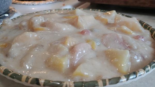Bilo-bilo is traditionally crafted from sweet rice flour or glutinous rice flour. However, Millie’s innovative Ginataan recipe incorporates grated cassava (yucca) roots as an alternative. Rich in starch, grated cassava roots enable the creation of soft, ball-shaped morsels when mixed with a small quantity of water. It’s important to note that not all Ginataan recipes include bilo-bilo; some variations omit this component. In Millie’s Ginataan, the inclusion of cassava bilo-bilo adds a unique and delightful twist to the dish.