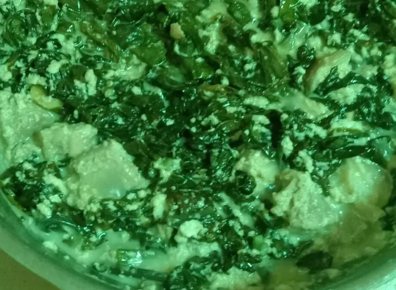 - Turn off the heat and transfer on a large bowl. Serve delicious, coconut milk taro leaves with steamed rice. Pour 2-4 tablespoon of vinegar, a pinch of salt or 1/4 teaspoon of fish sauce as a condiment.