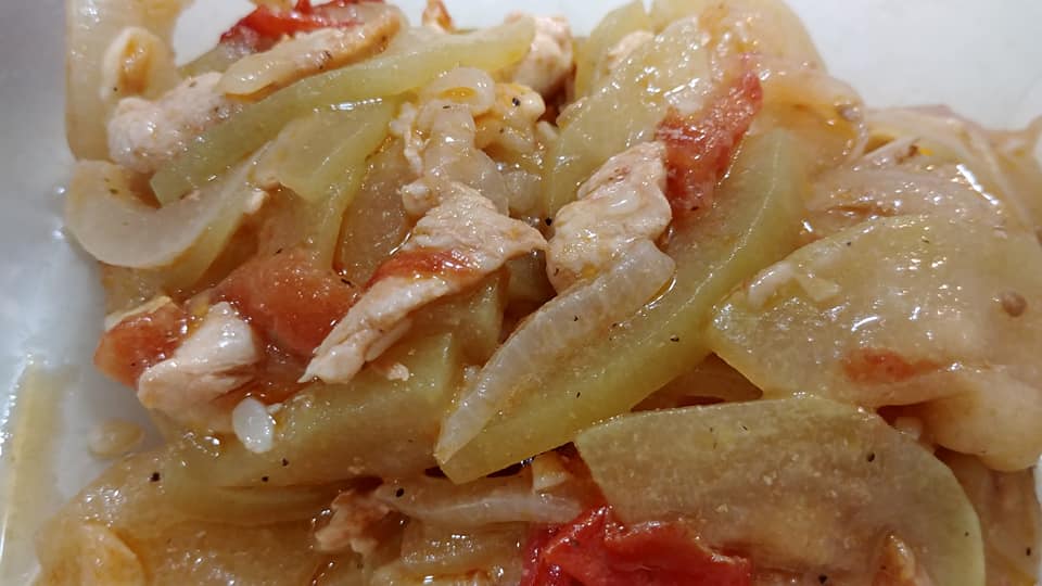 Note: Ginsang Upo or Sautéed Bottle Gourd is usually served with a side dish, either with fried meat or fish of some kind. It can be fried mackerel or tuna fish, or fried adobo dish, your choice.